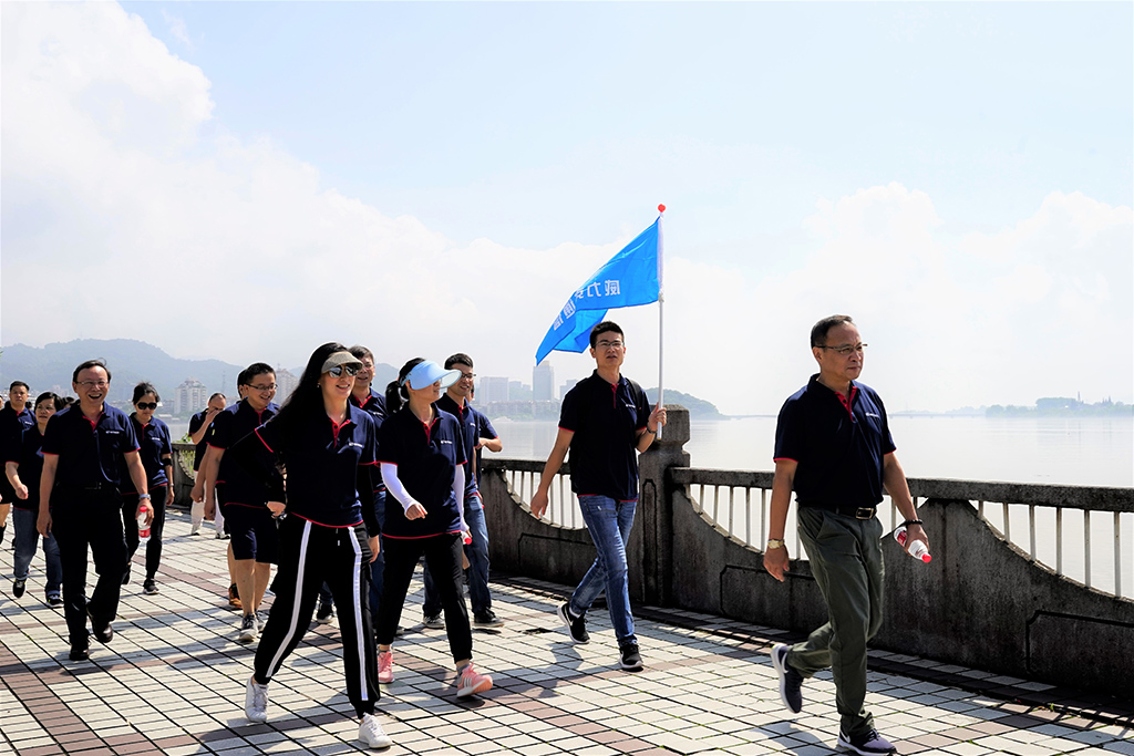 正式会议前,会务组精心组织了环富春江毅行的户外体能拉练活动。为了增加活动的竞争性,体现团结合作的精神,各与会代表分成四个小组进行团队比赛。美丽的富春江畔艳阳高照,大家成群结队、彼此鼓励、斗志昂扬地完成了10公里毅行路程,充分体现BETWAY必威职工团队昂扬向上、锐意进取、勇于创新的精神。活动最后,由公司总经理李昊对表现突出的团体进行了颁奖。